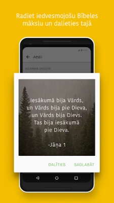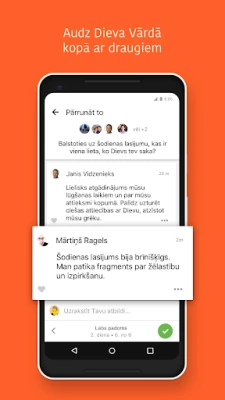 Stipriniet savas attiecības un dalīties atklājumos, veidojot draudzības ap Dieva Vārdu. Sekojiet līdzi draugu aktivitātēm sākuma lapā, komentējiet kopīgās studijas un apmainieties ar idejām. Izveidojiet iedvesmojošus Bībeles pantu attēlus, pievienojiet tos savām fotogrāfijām un ērti dalīties ar tiem sociālajos tīklos, e-pastā vai SMS, tādējādi izplatot cerību un ticību. Ar YouVersion kontu visi jūsu izcēlumi, grāmatzīmes un piezīmes tiks sinhronizēti mākonī, nodrošinot nemainīgu piekļuvi no jebkuras ierīces, tālāk bagātinot jūsu garīgo pieredzi un ļaujot pilnībā izmantot visus lietotnes sniegtos labumus.