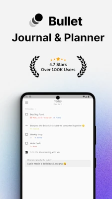 Vai vēlaties ikdienā praktizēt punktu dienasgrāmatu, taču priekšroka tiek dota digitālam formātam viedtālrunī, nevis tukšām lapām? Iepazīstieties ar *Bullet* — viedu risinājumu, kas pārveido jūsu ierīci par daudzpusīgu digitālo bujo. Šī lietotne bez piepūles apvieno personīgās dienasgrāmatas, detalizēta uzdevumu plānotāja un garīgās labsajūtas uzraudzītāja funkcijas. Tā ir izstrādāta, lai padarītu jūsu ikdienu, nedēļas un pat gadu plānošanu, sekošanu līdzi progresam un organizēšanu neticami vienkāršu un intuitīvu. Ar *Bullet* katra doma, mērķis vai atmiņa atrod savu vietu zibenīgi ātri.