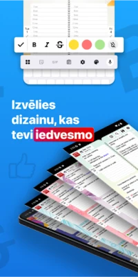 Pielāgojiet savu pierakstu vidi ar daudzveidīgiem fona dizainiem un iespēju izcelt piezīmes ar krāsām, pasvītrojumiem, treknrakstu vai kursīvu – ideāli prioritāšu noteikšanai un uzdevumu statusa atzīmēšanai. Ievadiet uzdevumus un plānus bez piepūles, izmantojot tekstu vai balss komandas, bez sarežģītām veidlapām. Atsevišķa "atgādinājumu lapa" ir pieejama idejām un iepirkumu sarakstiem, kas nav piesaistīti konkrētam datumam. Izbaudiet automātiskos atgādinājumus, atkārtojošos notikumus un pat iespēju dalīties ar savu sarakstu ar draugiem vai kolēģiem. Turklāt, tā integrējas ar jūsu esošajiem kalendāriem, piemēram, Google Calendar un iPhone Calendar, nodrošinot vienotu pārvaldību.