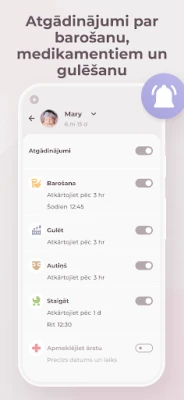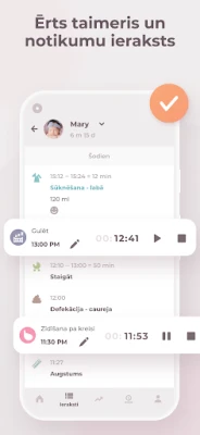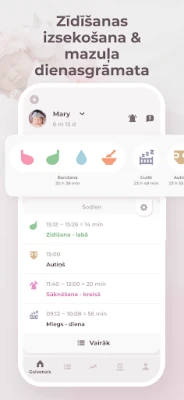 Ar Erbijs barošanas laiku uzsākšana ir tikai viena pieskāriena attālumā. Viegli fiksējiet zīdīšanas ilgumu katrai krūtij, nodrošinot vienmērīgu laktācijas uzturēšanu un izvairoties no diskomforta. Precīzi reģistrējiet atslauktā piena apjomu un pārvaldiet saldētā piena krājumus, garantējot, ka mazuļa barība vienmēr ir pieejama. Sekojiet līdzi arī pirmo piebarojumu ieviešanai un mazuļa reakcijām uz jauniem produktiem. Papildus barošanai, Erbijs palīdz detalizēti izsekot bērna miega cikliem – gan dienas, gan nakts –, kā arī kontrolēt autiņbiksīšu maiņu biežumu un saturu, sniedzot pilnīgu priekšstatu par mazuļa labsajūtu.