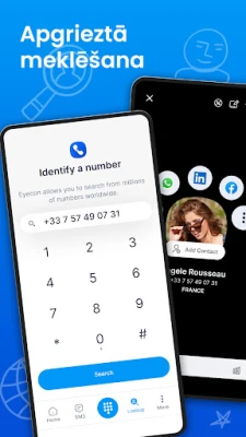 Eyecon nodrošina Jums kontroli pār to, kas Jūs sasniedz. Pateicoties inteliģentajam zvanītāja ID, kas balstīts uz sociālo mediju identifikatoriem, Jūs vienmēr redzēsiet zvanītāja augstas kvalitātes foto un vārdu, pat ja numurs nav saglabāts Jūsu tālrunī. Atvadieties no nevēlamiem mārketinga zvaniem un anonīmiem zvanītājiem – bloķējiet tos ar vienu klikšķi un pārvaldiet, kurš var Jūs sasniegt. Turklāt, Eyecon apvieno Jūsu iecienītākās saziņas platformas, piemēram, WhatsApp, Facebook, Viber, ziņapmaiņu, e-pastu un Skype, vienā ērtā saskarnē, ļaujot sazināties tā, kā vēlaties, bez liekām pārslēgšanām.
