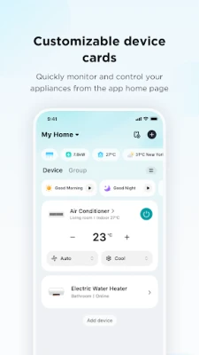 Vairs nekādas žonglēšanas ar vairākām lietotnēm! SmartHome sniedz vienotu, intuitīvu platformu, lai bez piepūles savienotu, uzraudzītu un pārvaldītu visas jūsu viedās ierīces no Midea, Eureka, Pelonis, Comfee, Master Kitchen, Artic King un MDV. Tā ir jaunās paaudzes vadības sistēma, kas pārspēj MSmartHome un Midea Air piedāvāto, nodrošinot pilnīgi jaunu vizuālo pieredzi un ievērojami uzlabotu lietošanas komfortu. Ienāciet nākotnē, kur jūsu mājas ir pilnībā jūsu kontrolē, atrodoties jebkurā vietā.