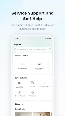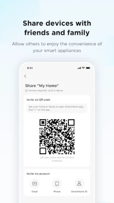 SmartHome atbalsta plašu mājsaimniecības ierīču klāstu, tostarp gaisa kondicionierus, putekļsūcējus, gaisa mitrinātājus, ventilatorus, cepeškrāsnis, veļas mazgājamās un žāvējamās mašīnas, trauku mazgājamās mašīnas un daudz ko citu. Lai nodrošinātu pilnīgu funkcionalitāti, lietotne lūdz atļaujas piekļūt Bluetooth, atrašanās vietai, kamerai un albumam. Šīs atļaujas tiek izmantotas, piemēram, ierīču pievienošanai, atrašanās vietas noteikšanai automatizācijām vai QR kodu skenēšanai, taču lietotni joprojām var izmantot bez šiem pakalpojumiem, ja piekļuve netiek atļauta. Lūdzu, ņemiet vērā, ka produktu un pakalpojumu pieejamība var atšķirties atkarībā no jūsu ierīču modeļiem vai reģiona/valsts, kurā atrodaties.